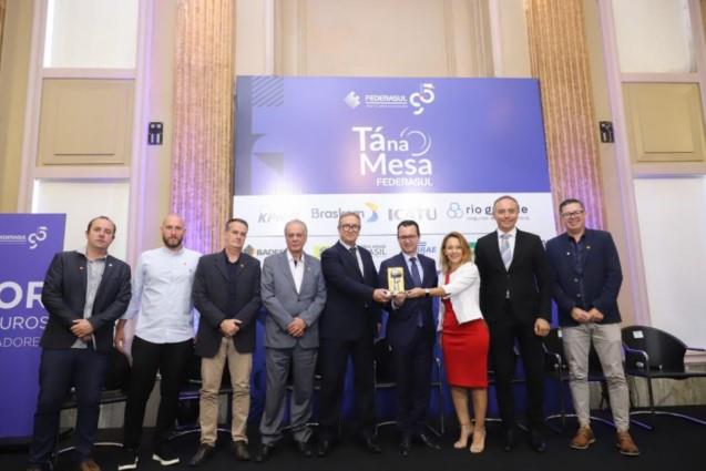Durante a solenidade, em Porto Alegre (RS), a AGERT entregou ao presidente da Federasul, Anderson Trautman Cardoso, o Troféu Microfone pelo aniversário de 95 anos da entidade empresarial.