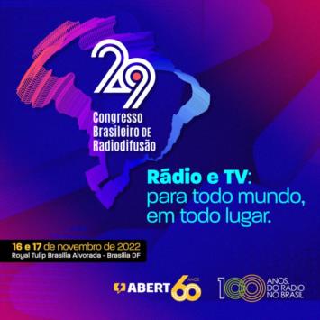 Empresários, radiodifusores e profissionais do rádio e da TV de todo o país estarão reunidos em Brasília no 29º Congresso Brasileiro de Radiodifusão, que terá como tema principal “Rádio e TV: para todo mundo, em todo lugar”.